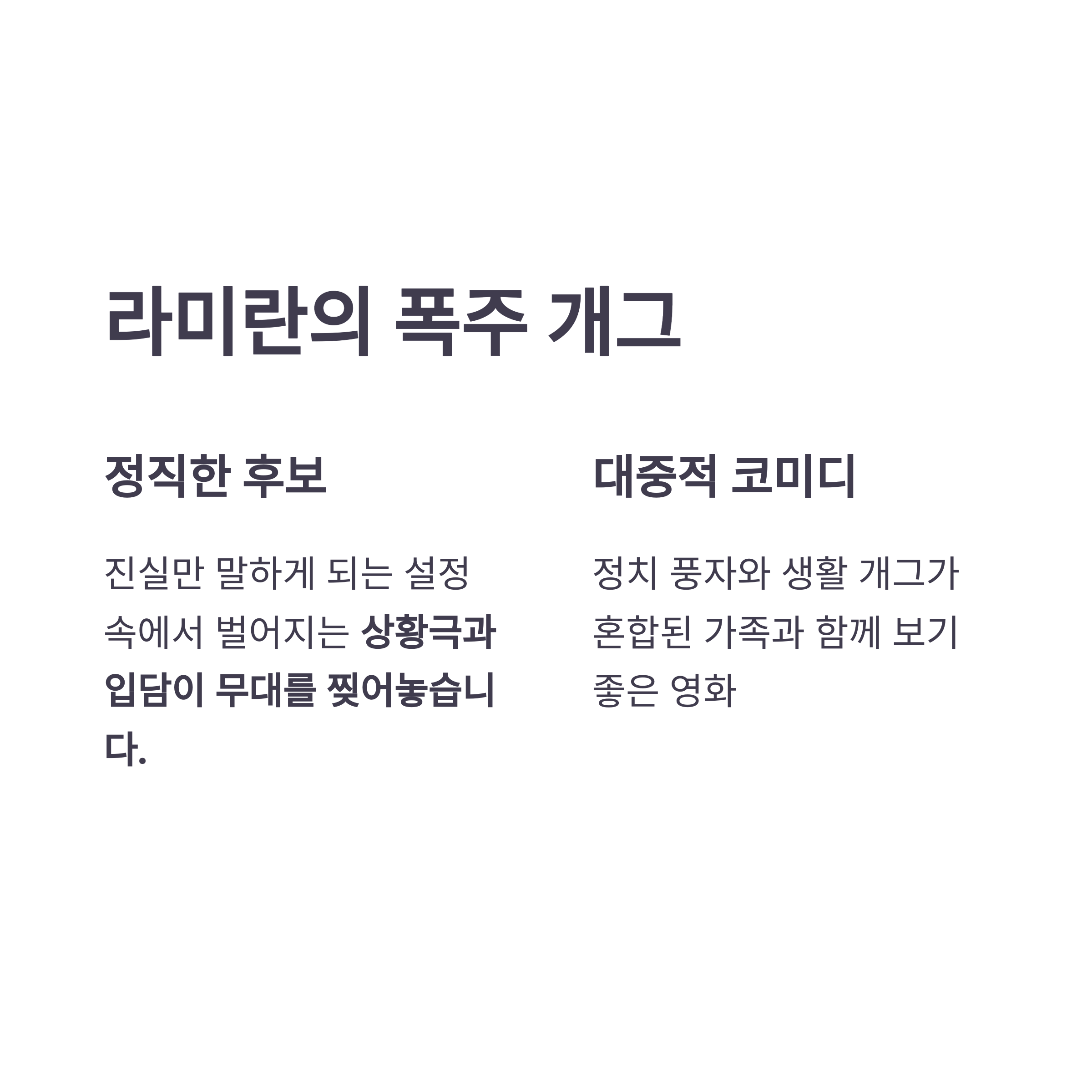 | 정직한 후보 | 설정 코미디 | 라미란, 진실만 말하기 |