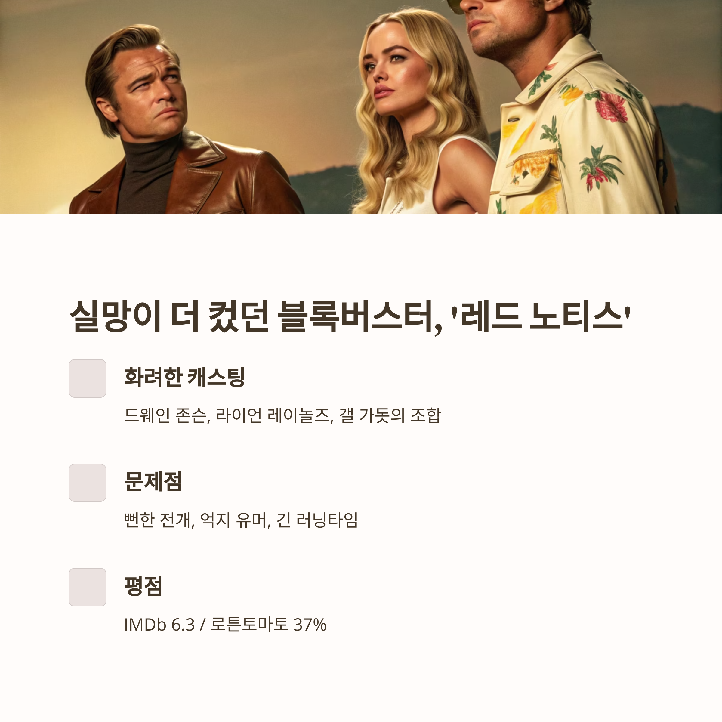- 평점: IMDb 6.3 / 로튼토마토 37% (비평가)