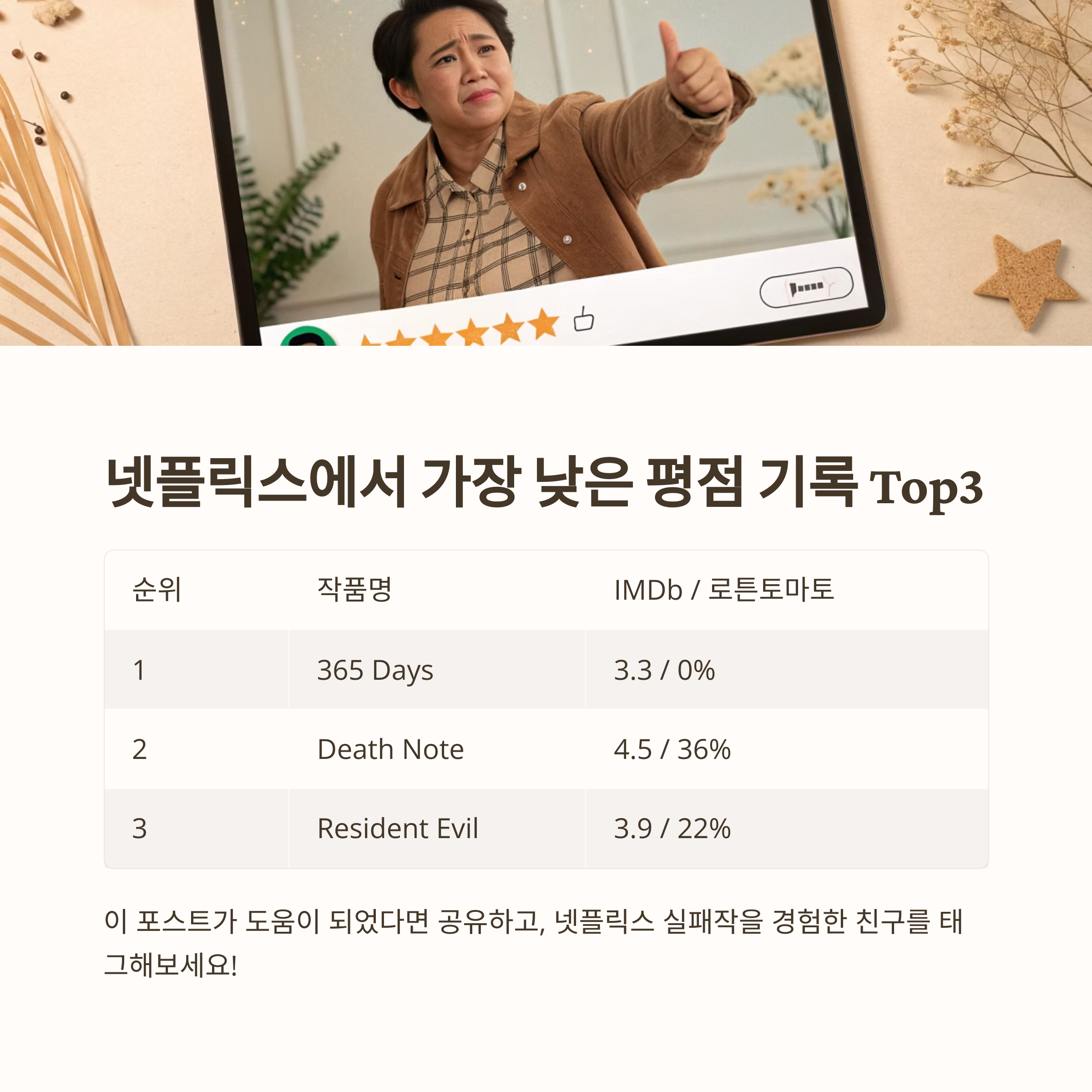 ‘넷플릭스에서 가장 낮은 평점 기록’ Top3