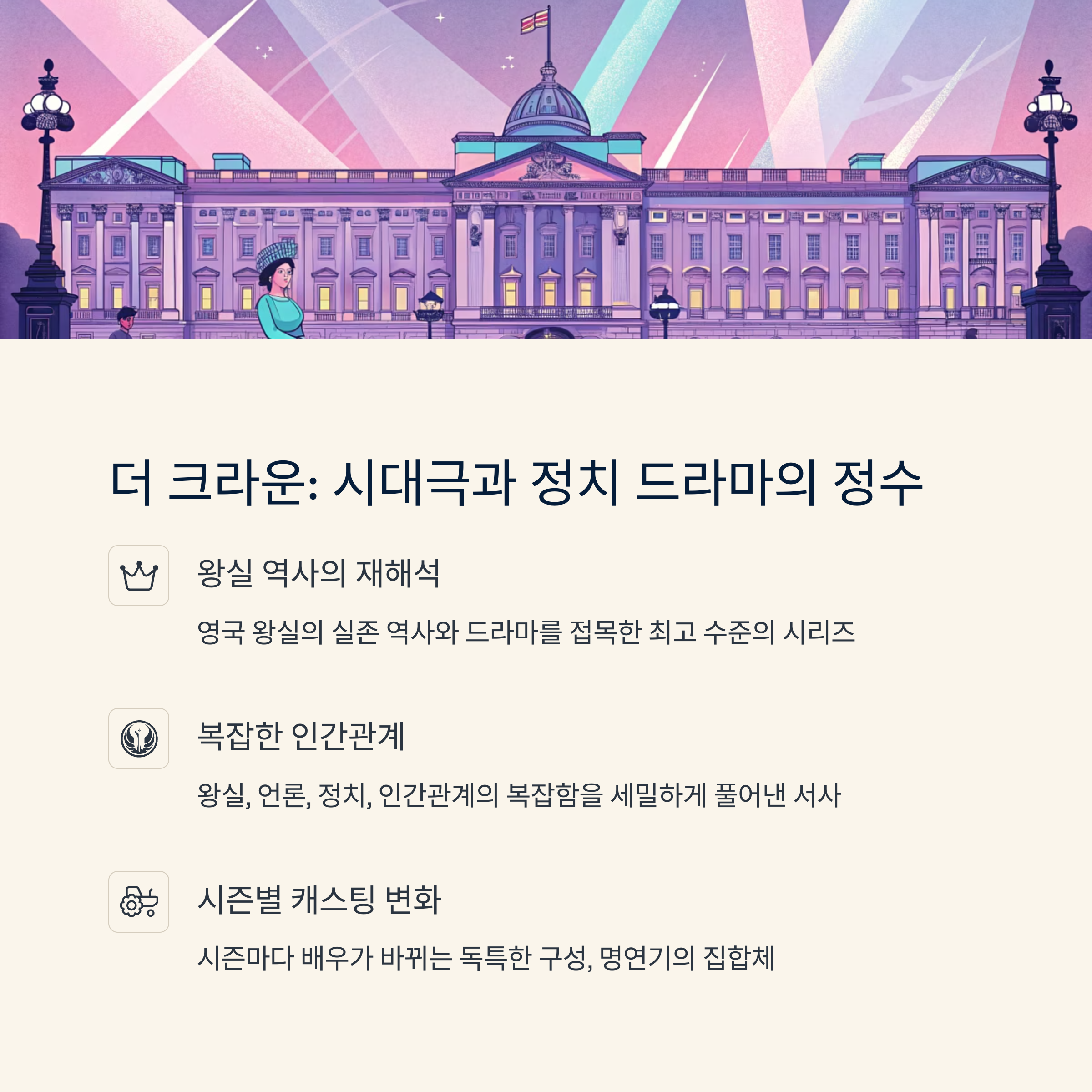 | 더 크라운 | 시대극/정치극 | 6 | 역사 해석+드라마 서사 완성도 최고 |