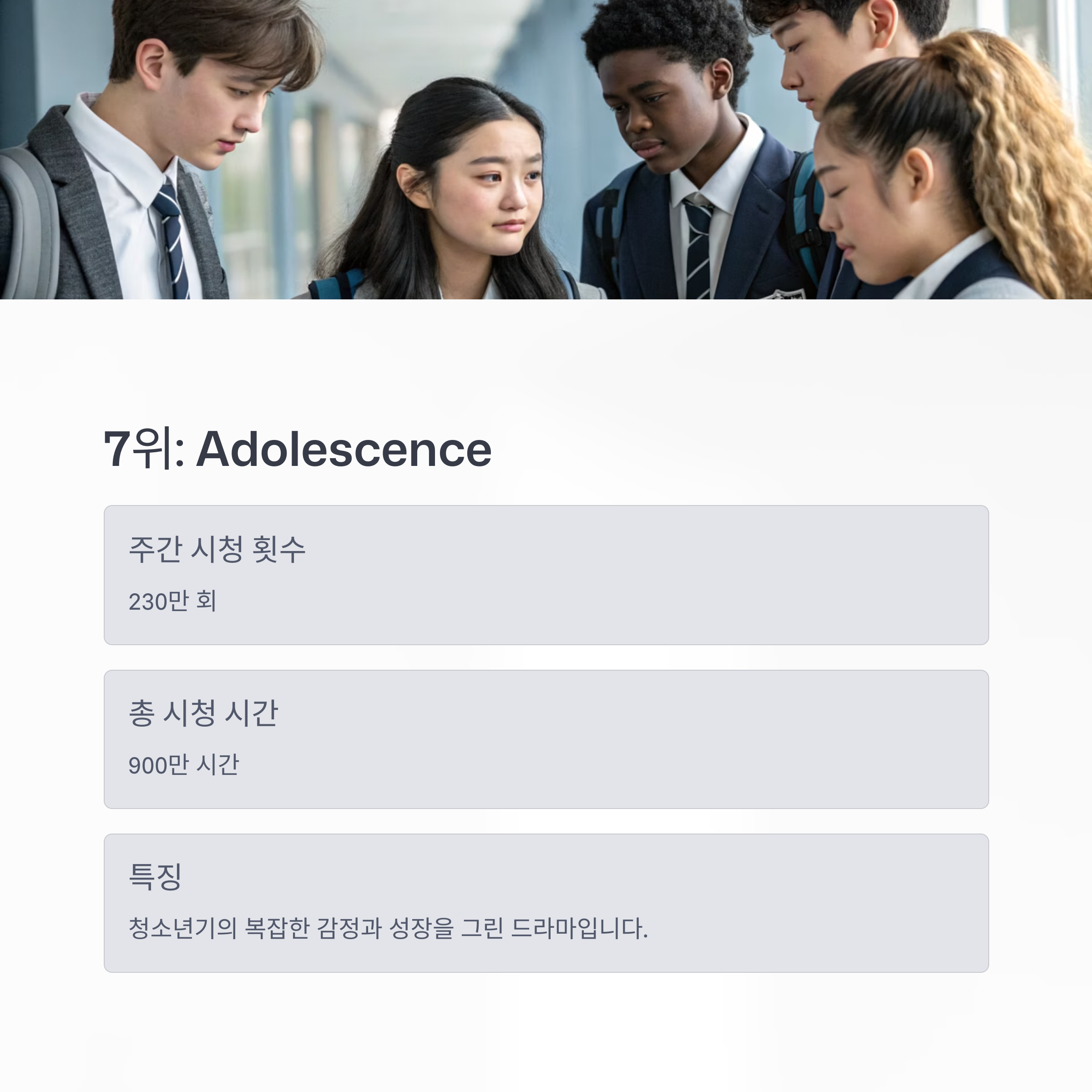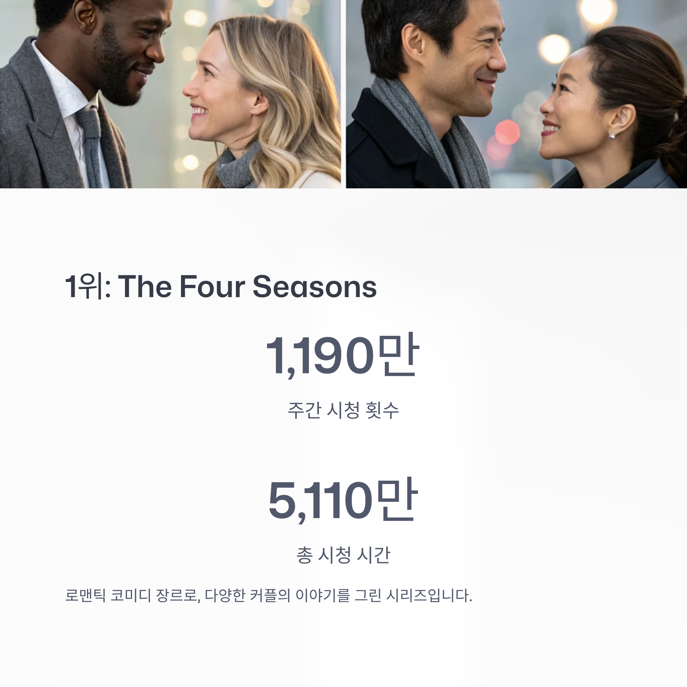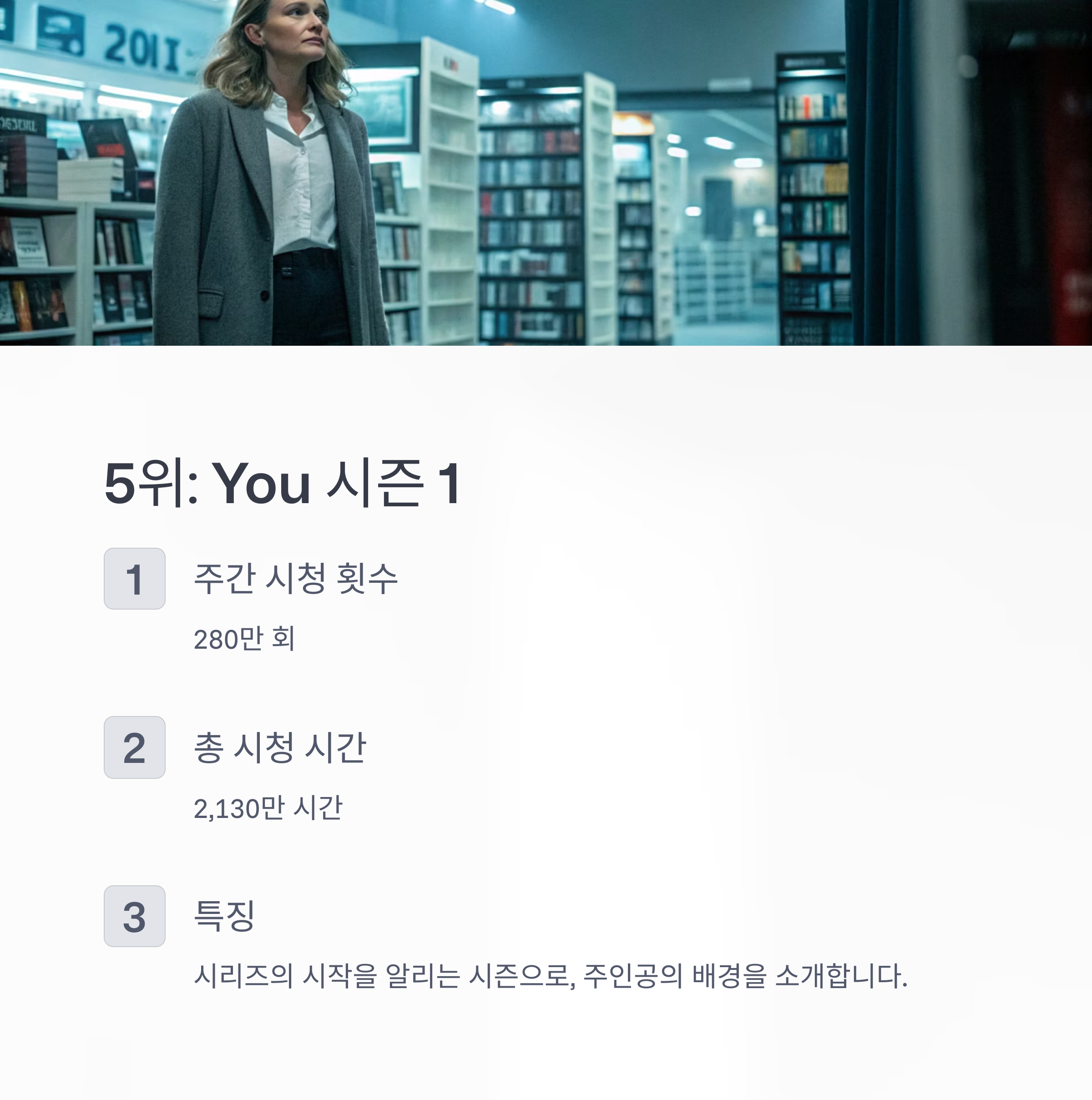 넷플릭스는 매주 전 세계 시청 데이터를 기반으로 인기 콘텐츠 순위를 발표합니다.