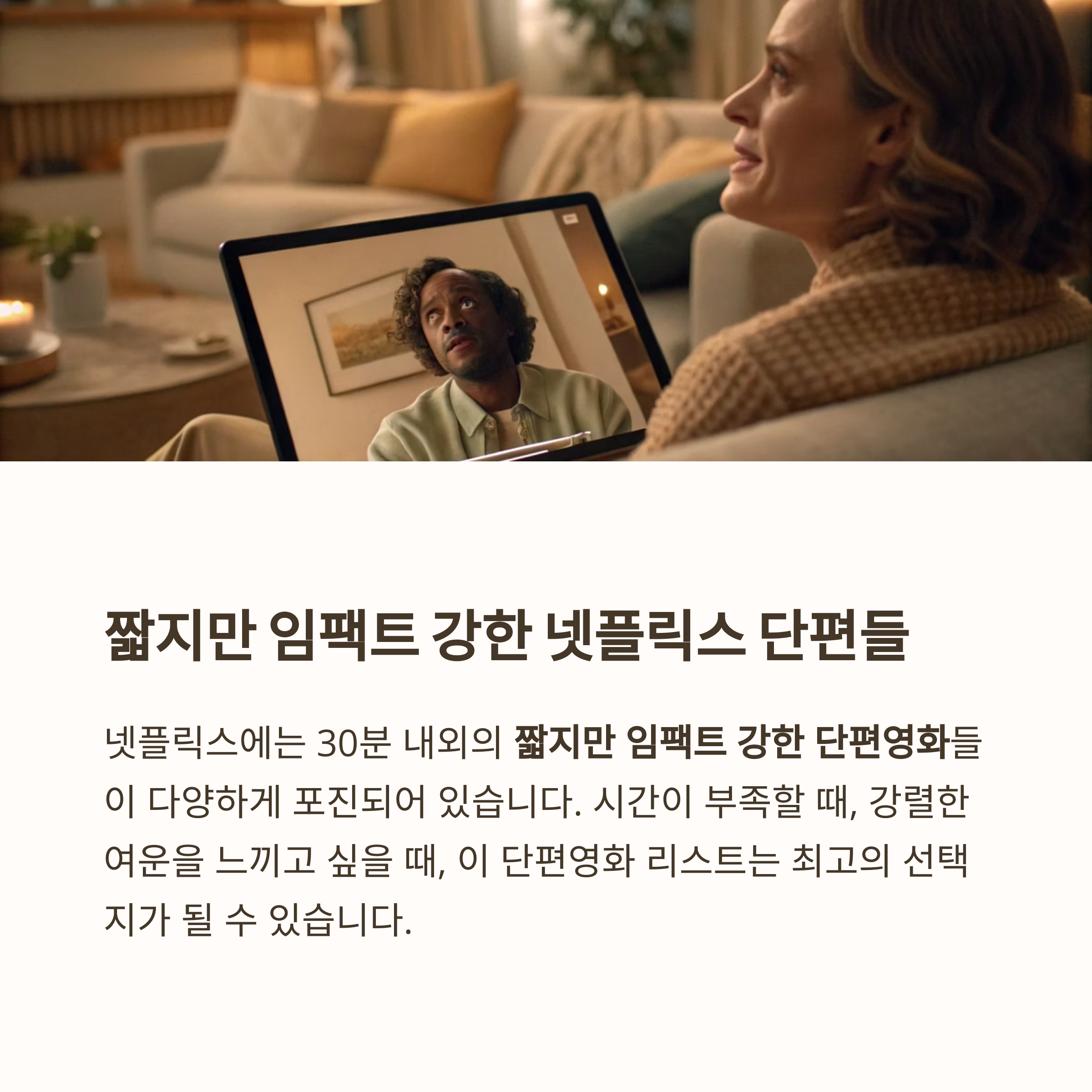 넷플릭스에는 30분 내외의 짧지만 임팩트 강한 단편영화들도 다양하게 포진되어 있습니다.