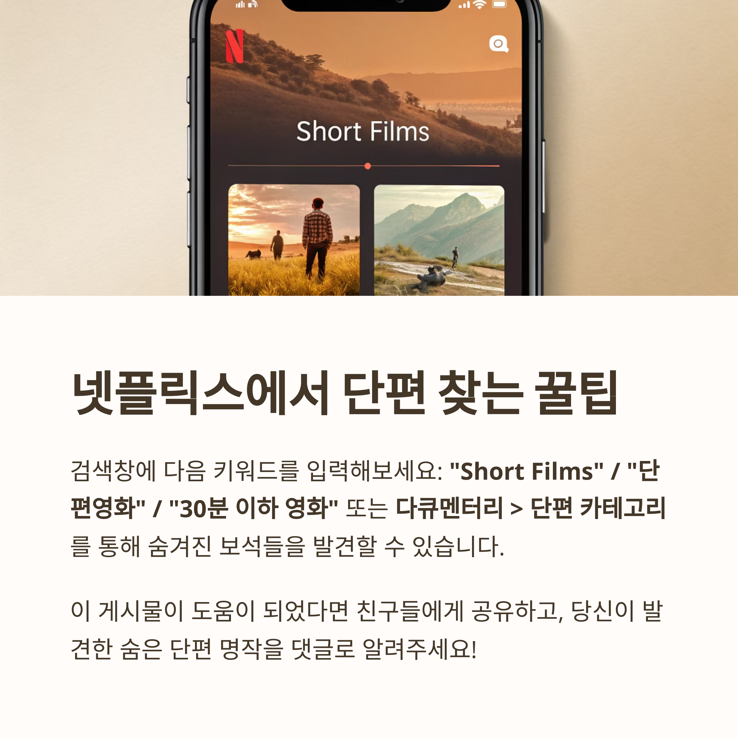 넷플릭스는 정기적으로 단편 시리즈를 추가하니, 알림 등록도 추천드립니다.