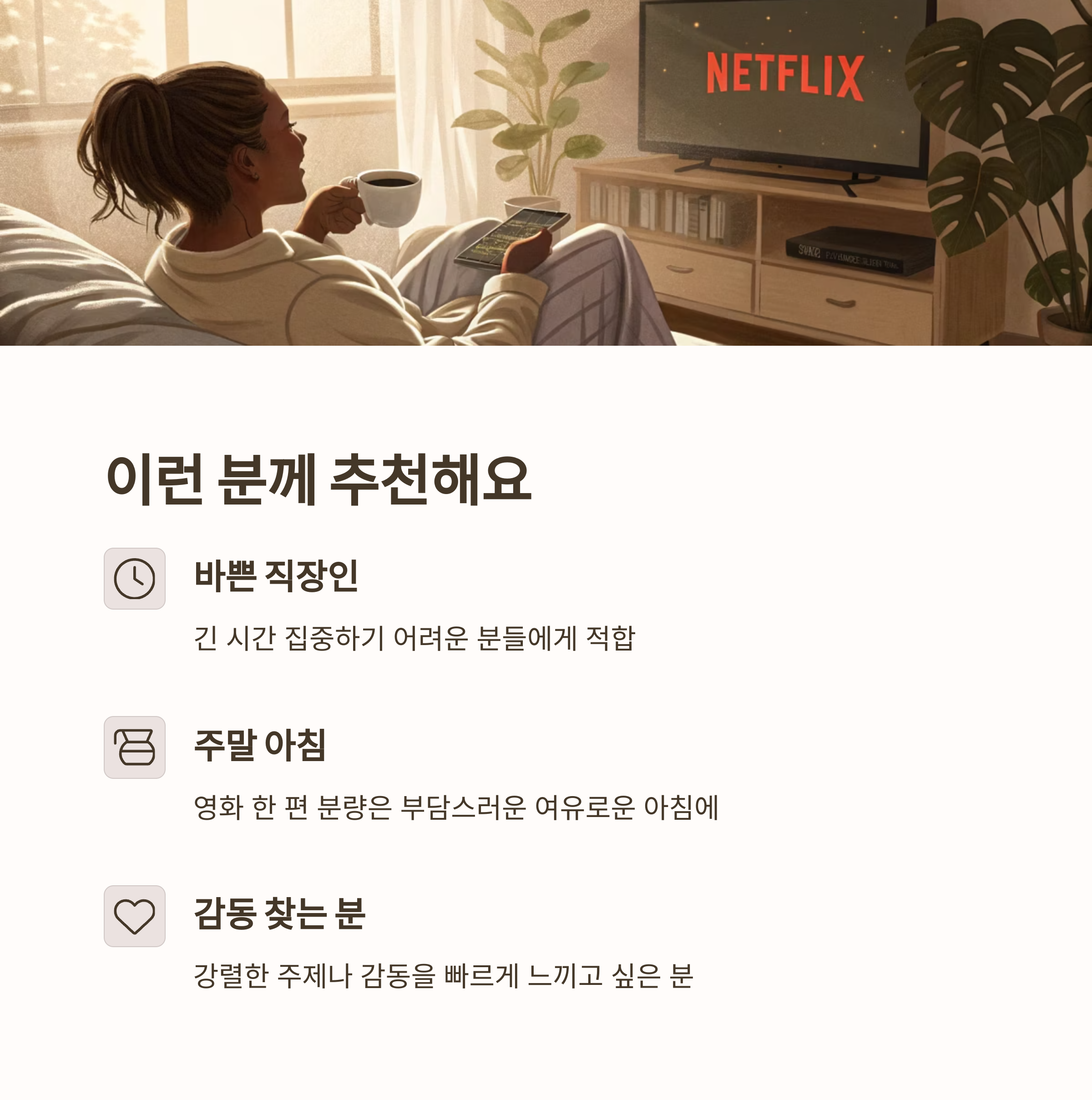- 강렬한 주제나 감동을 빠르게 느끼고 싶은 분
