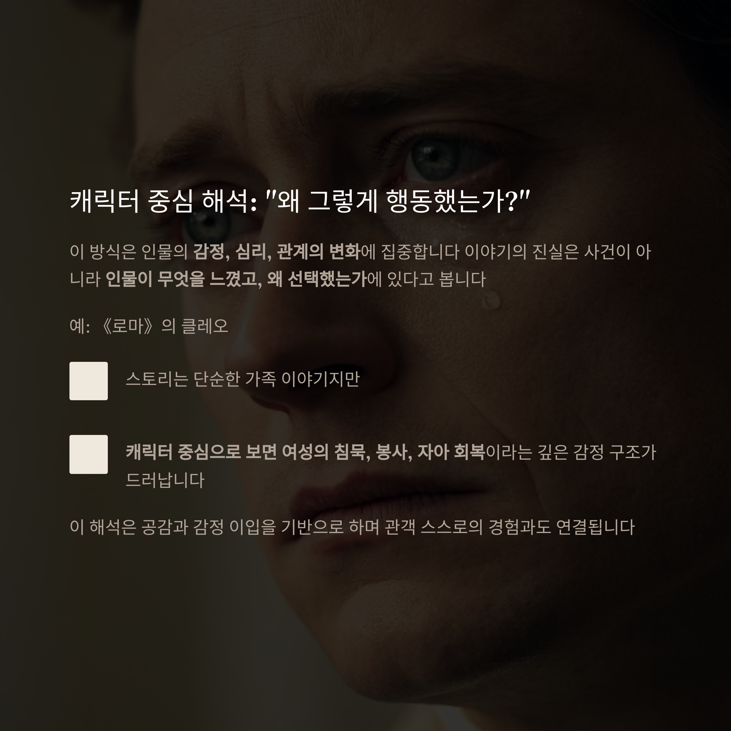 인물의 내면과 감정에 집중하는 ‘캐릭터 중심 해석’