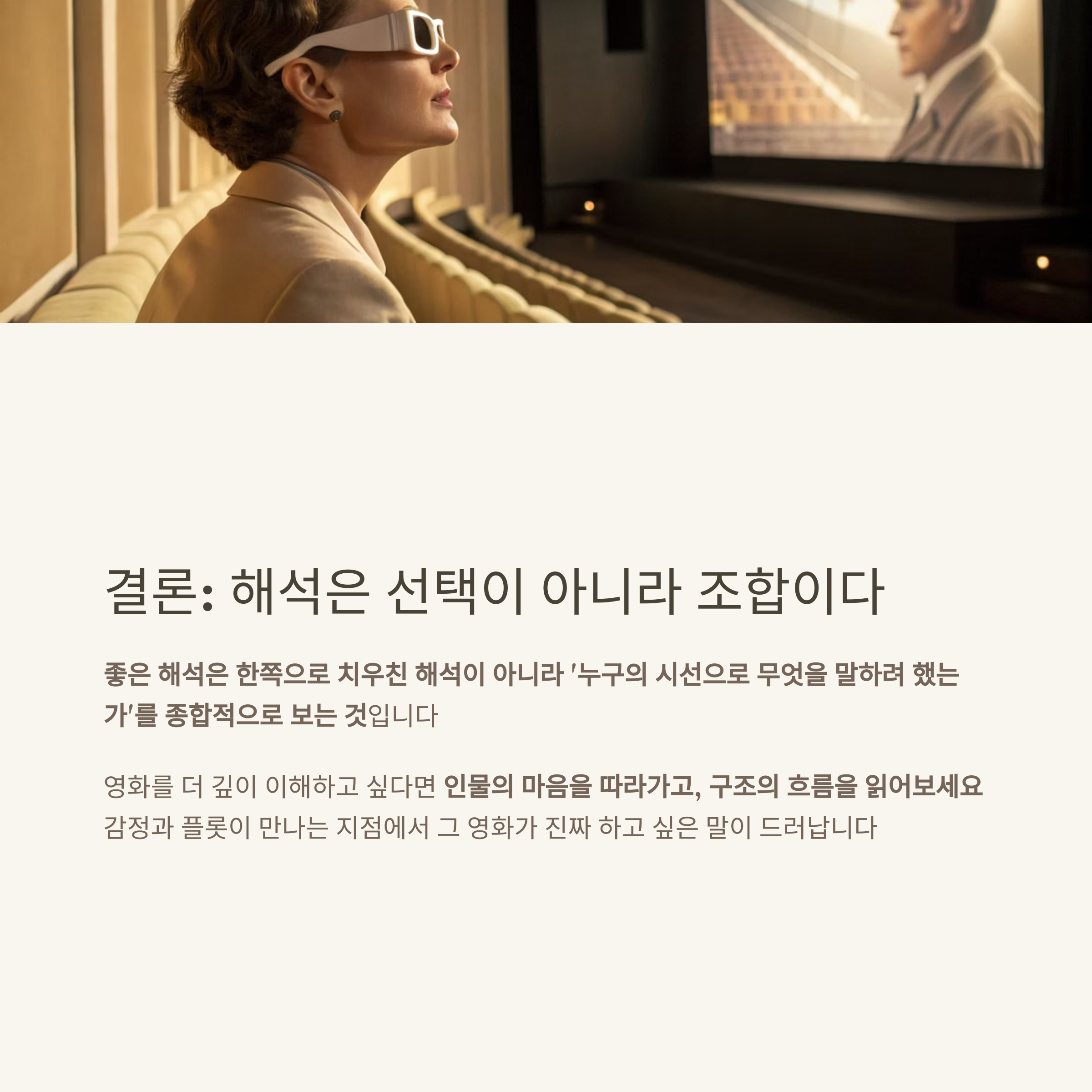이 두 해석은 영화를 입체적으로 감상하게 만드는 두 눈입니다