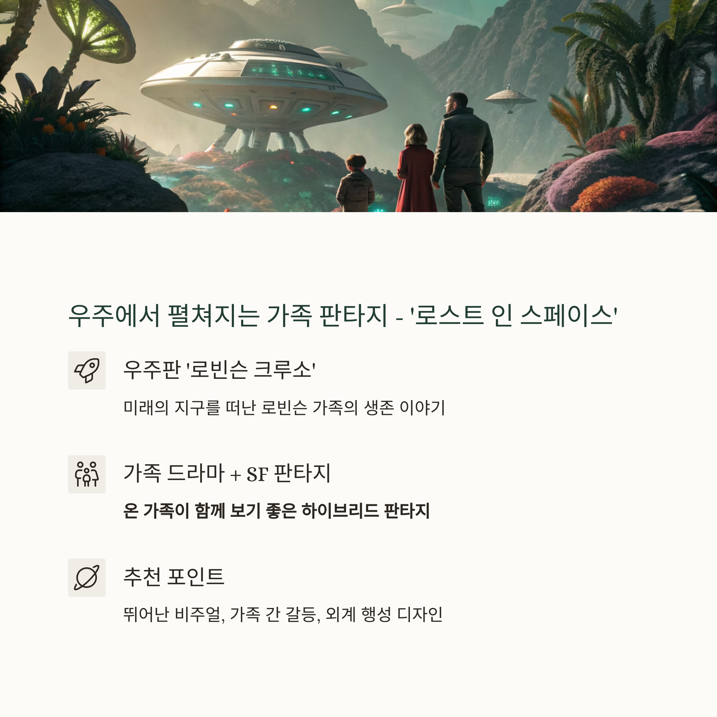 - 추천 포인트: 비주얼, 가족 간 갈등, 외계 행성 디자인