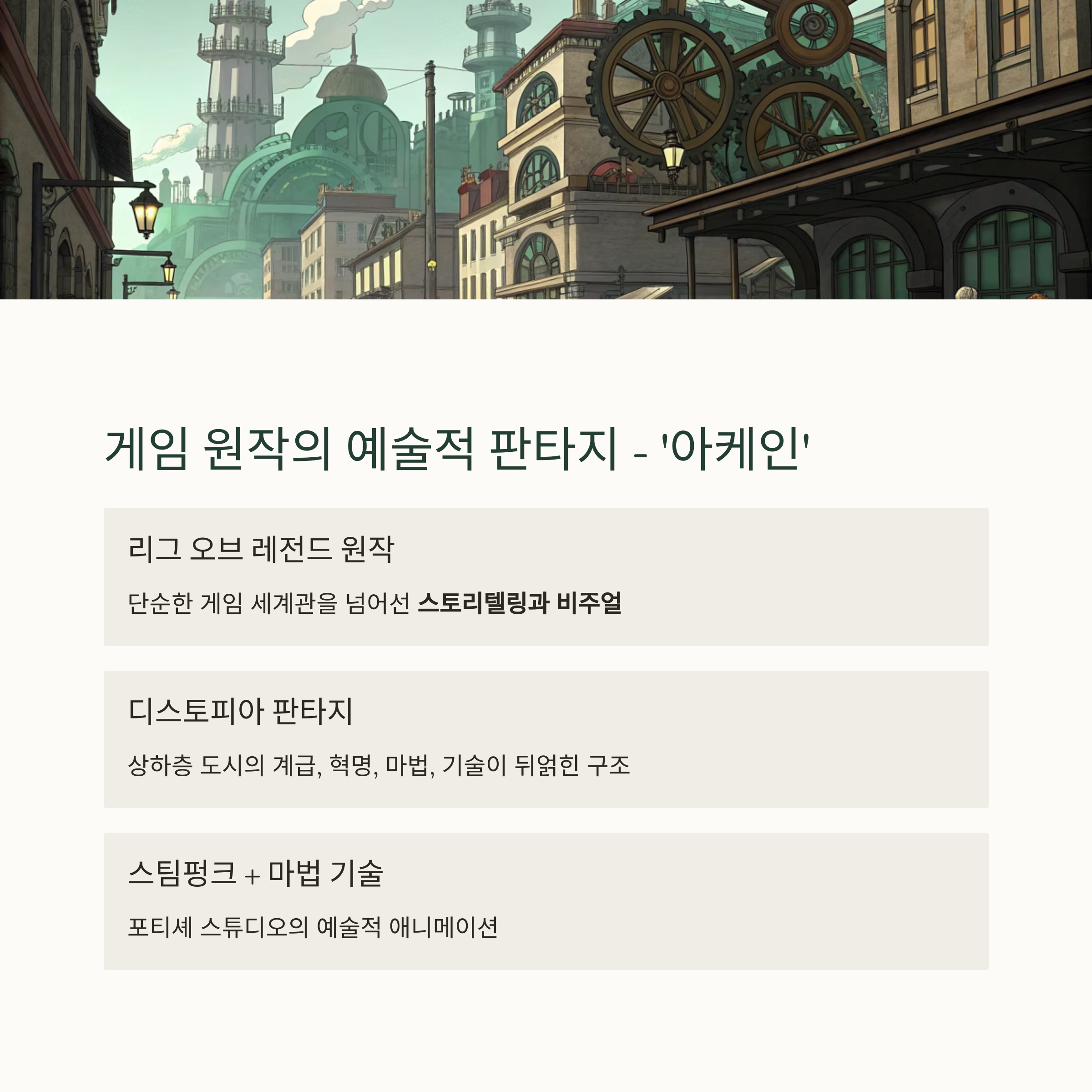 | 스타일 | 스팀펑크 + 마법 기술 |