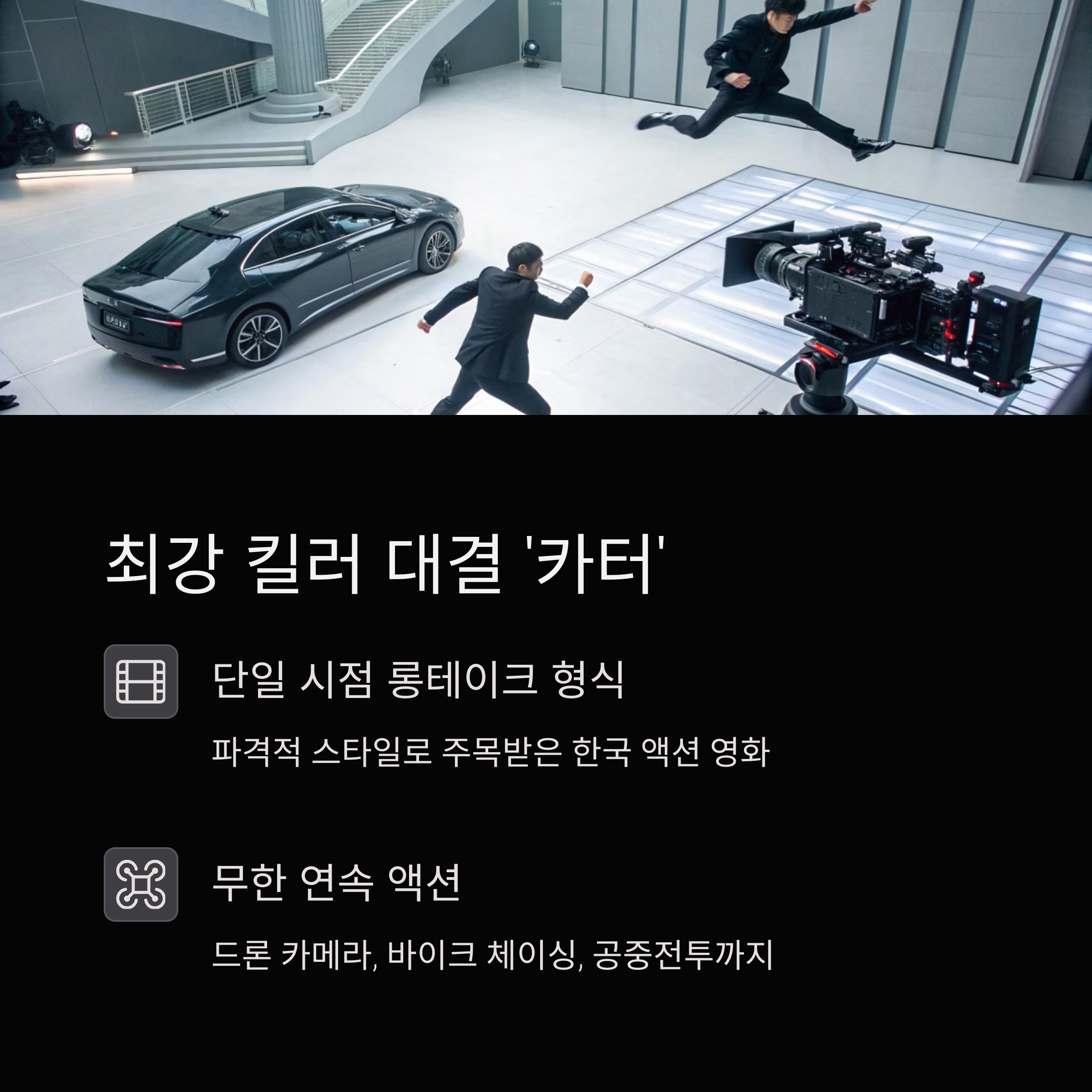 한국 영화 '카터'는 단일 시점 롱테이크 형식으로 촬영된 파격적 스타일로 주목받았습니다.