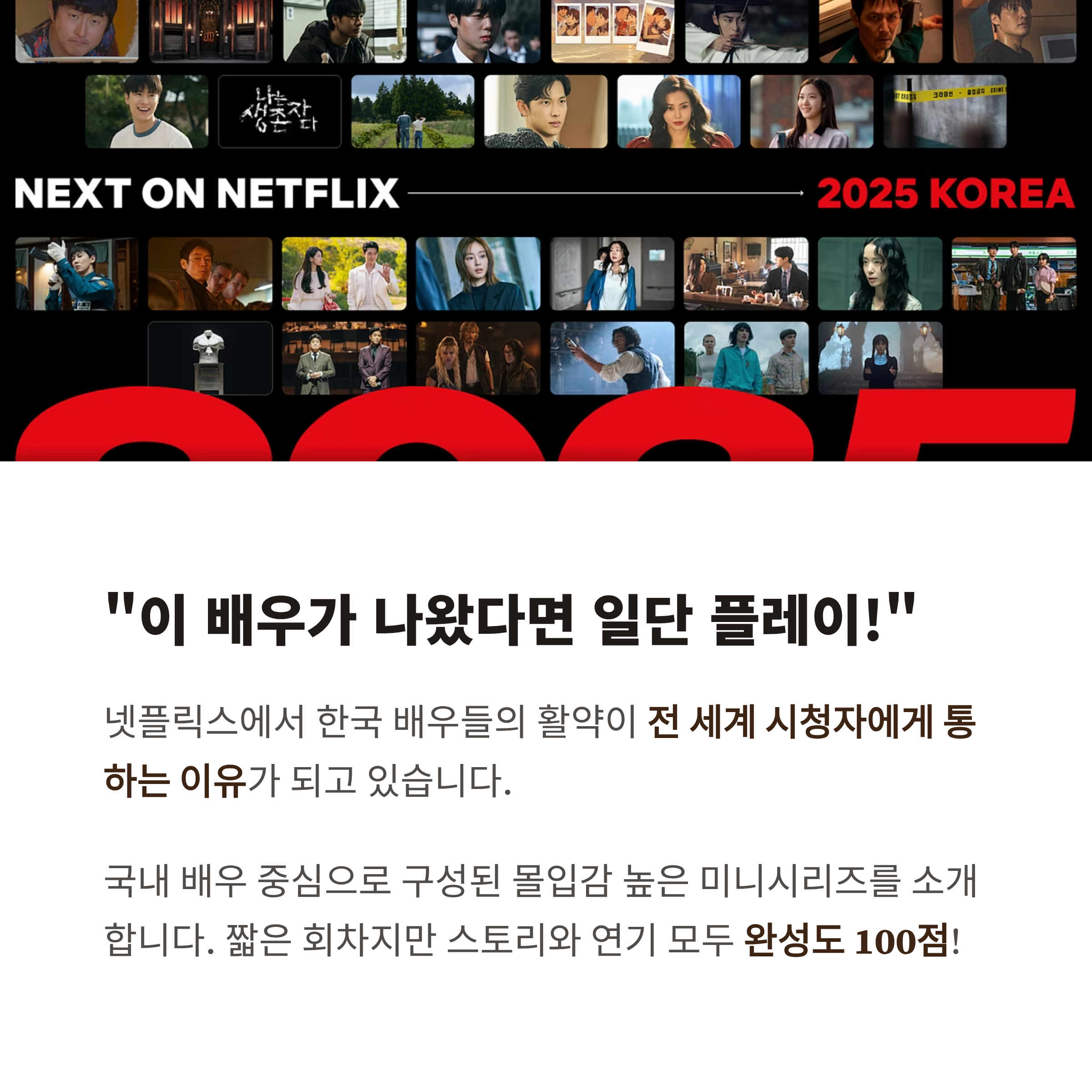 이번에는 국내 배우 중심으로 구성된 몰입감 높은 넷플릭스 미니시리즈를 소개합니다.