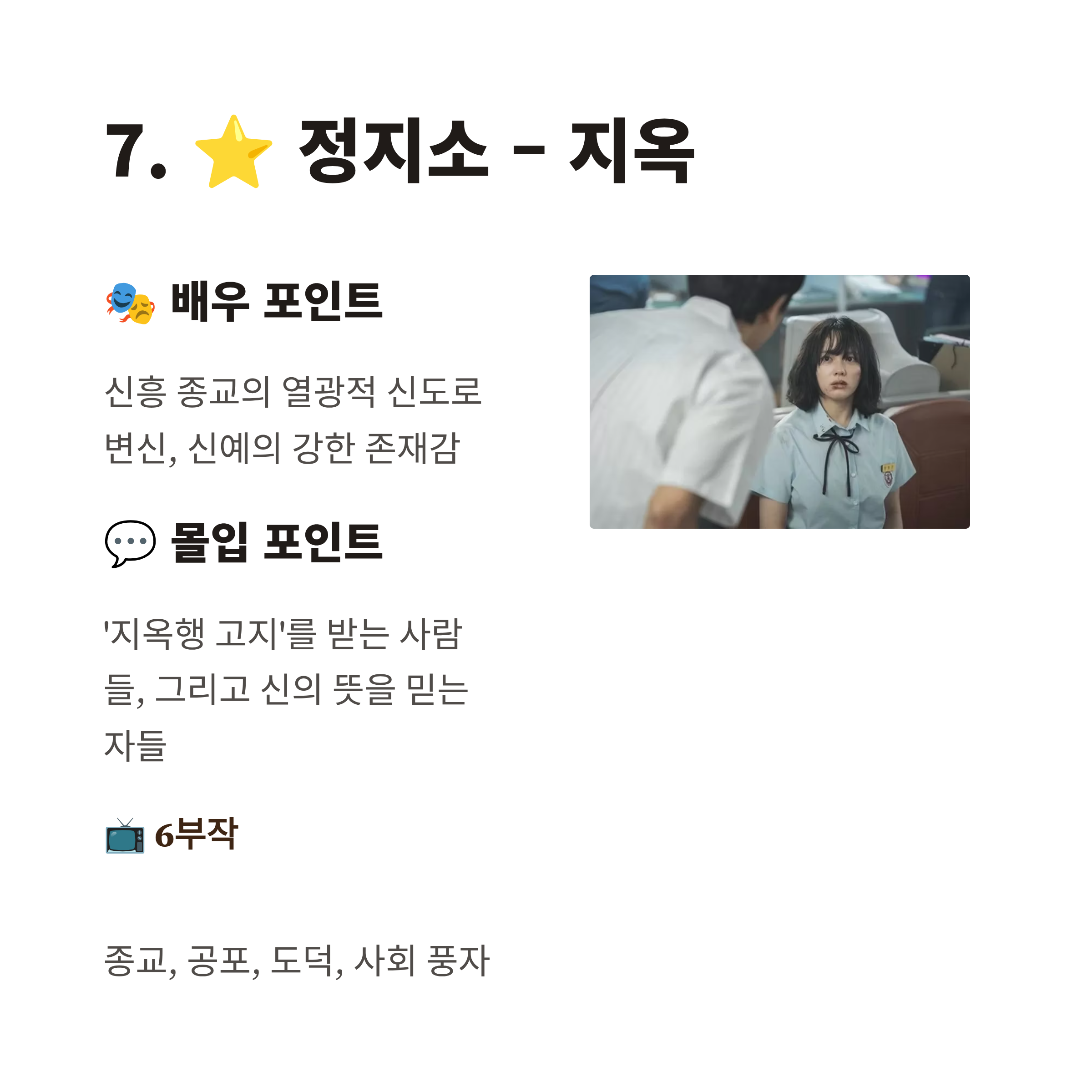- 💬 몰입 포인트: ‘지옥행 고지’를 받는 사람들, 그리고 신의 뜻을 믿는 자들