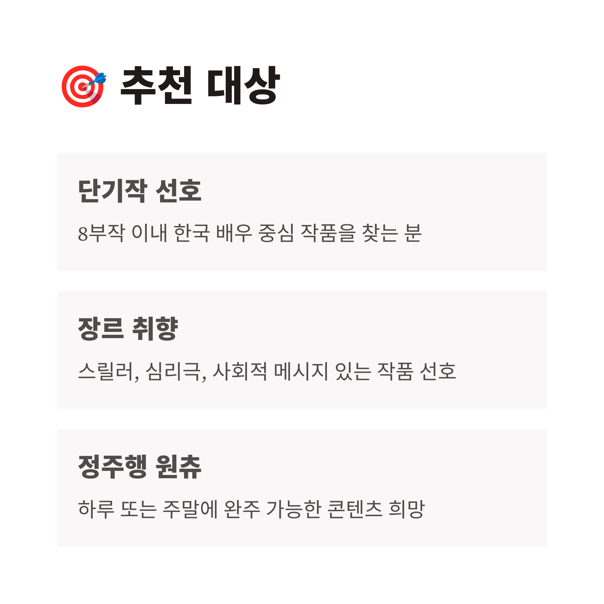 - ✅ 스릴러, 심리극, 사회적 메시지 있는 작품을 선호하는 분
