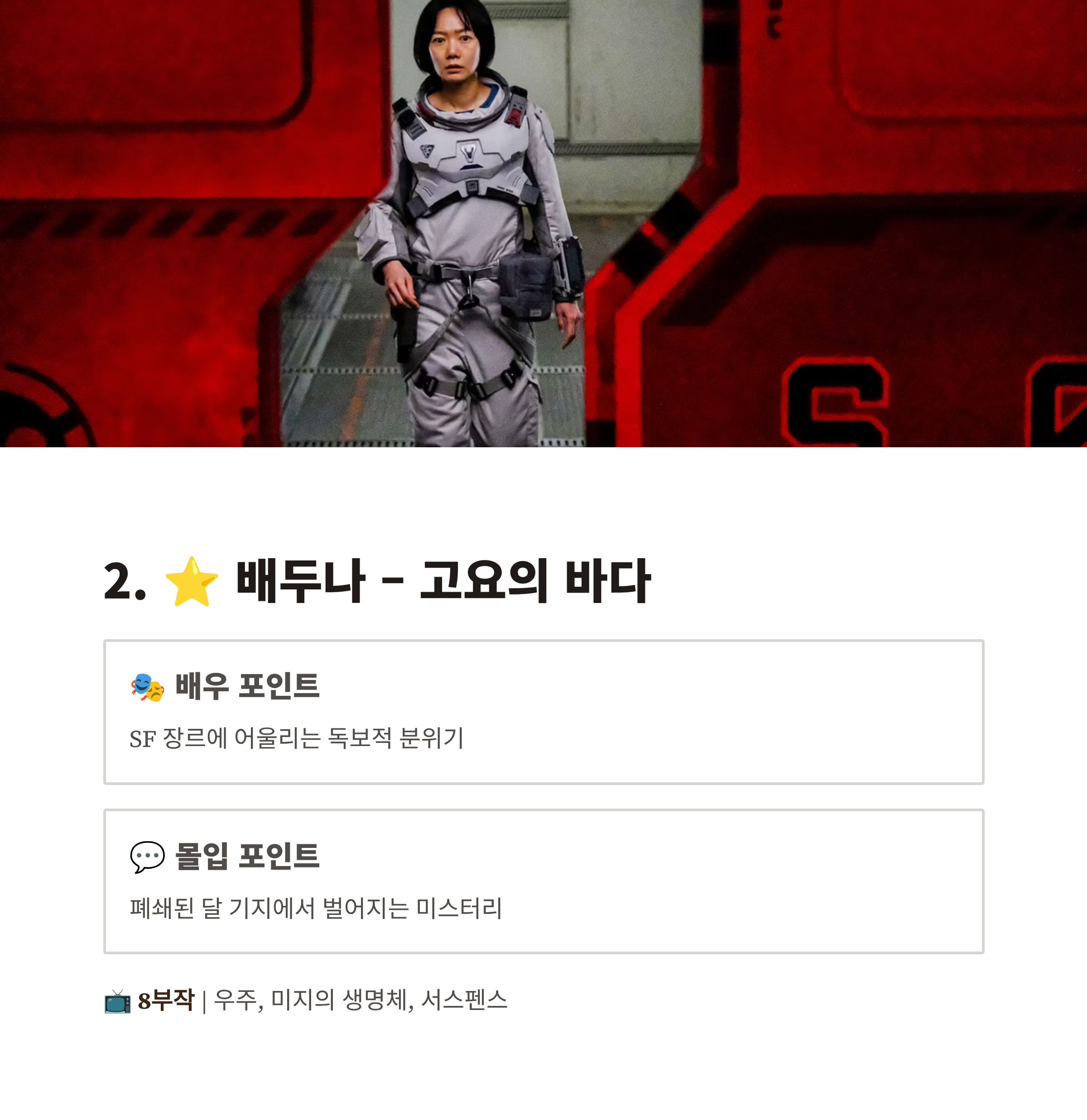 2. ⭐ 배두나 – 고요의 바다 (The Silent Sea)