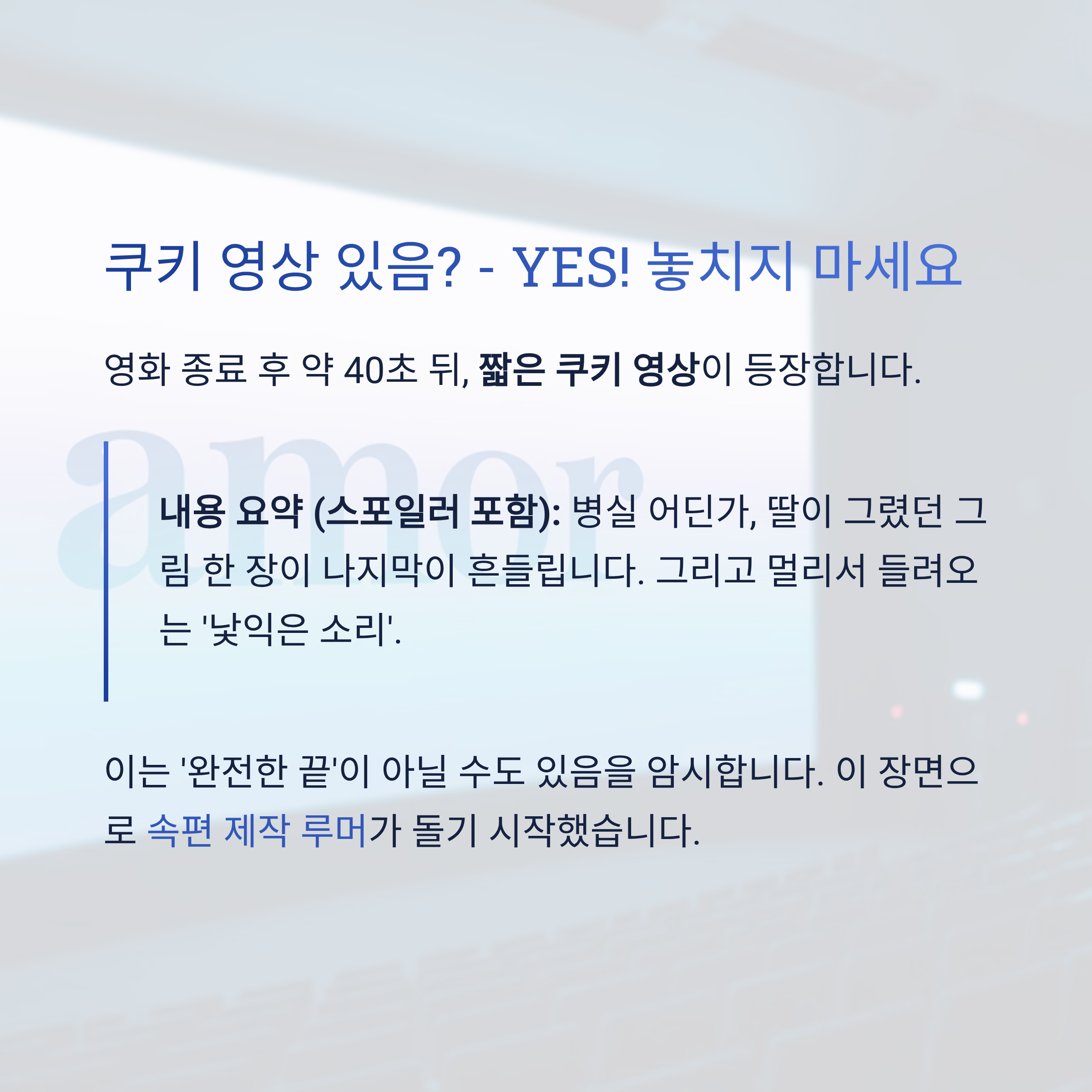 영화 종료 후 약 40초 뒤, 짧은 쿠키 영상이 등장합니다.
