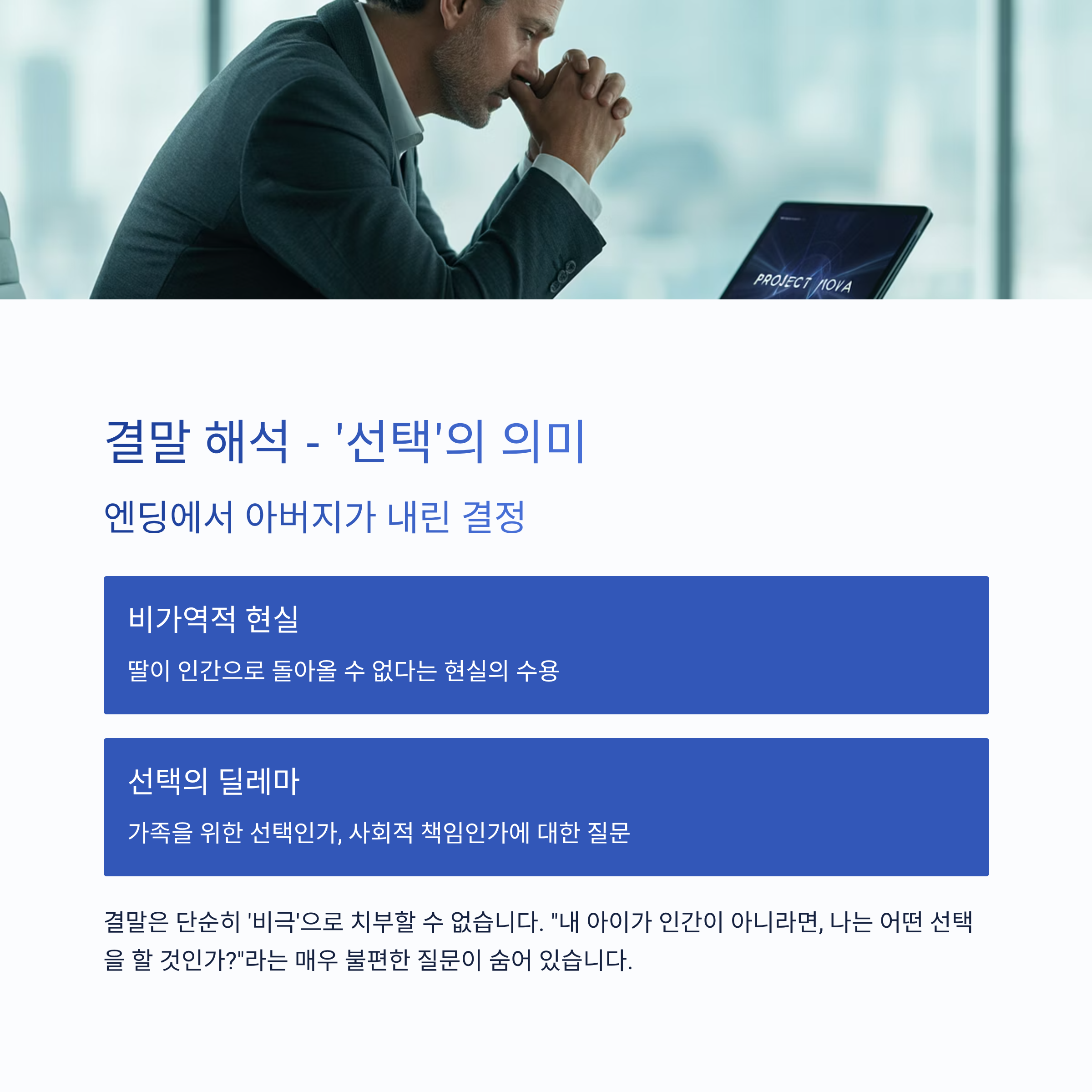 그 안에는 “내 아이가 인간이 아니라면, 나는 어떤 선택을 할 것인가?”라는