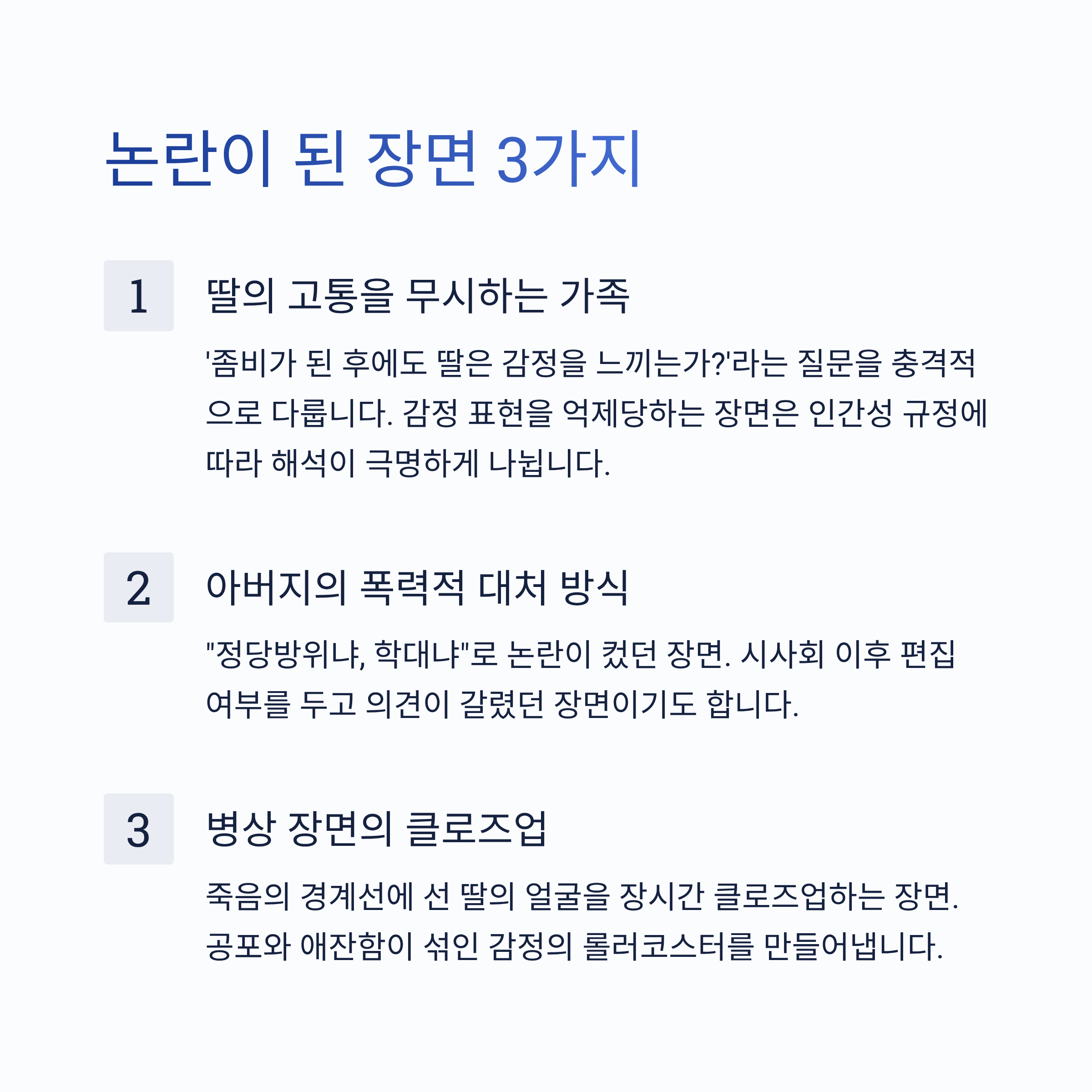 ‘좀비가 된 후에도 딸은 감정을 느끼는가?’라는 질문을