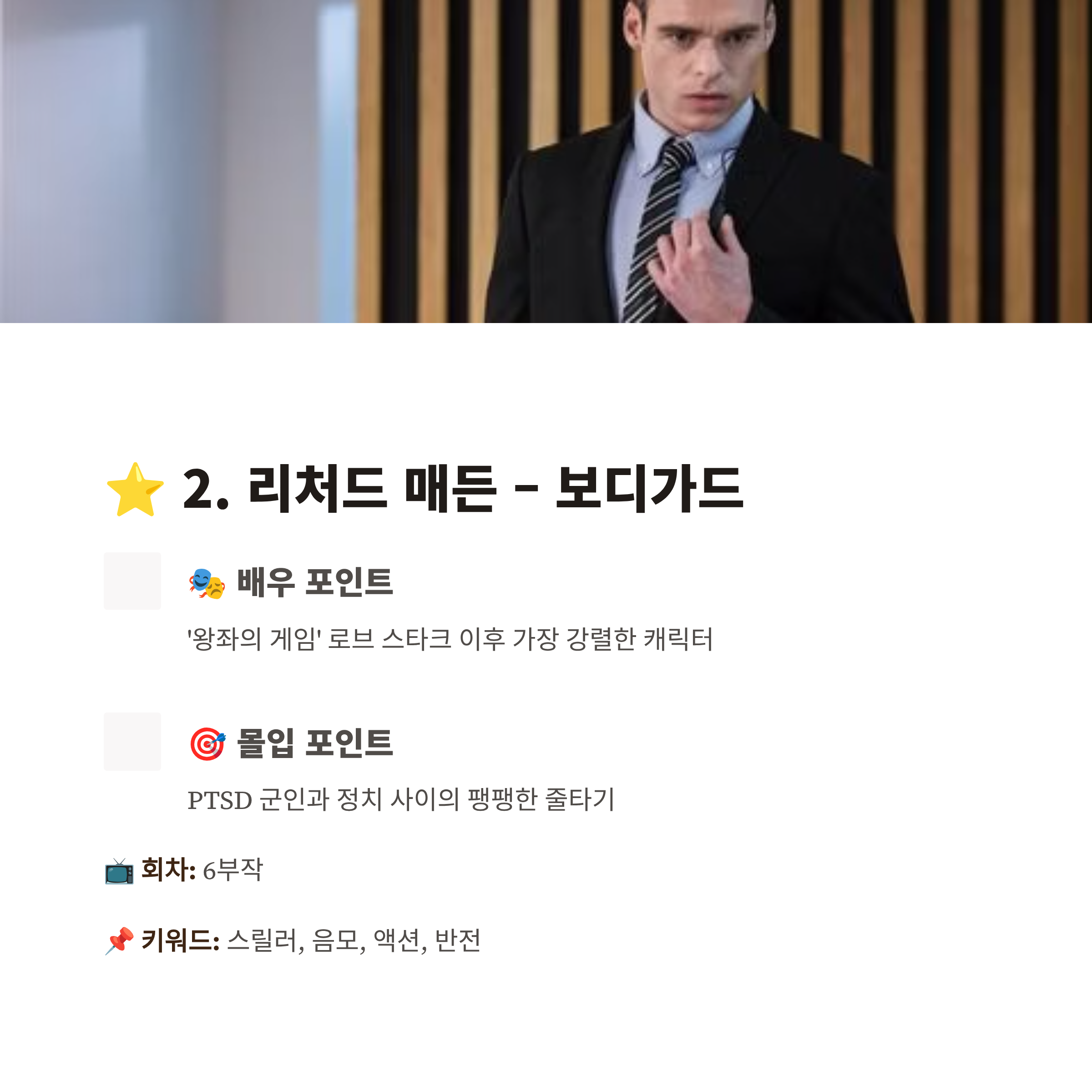 ⭐ 2. 리처드 매든 – 보디가드 (Bodyguard)