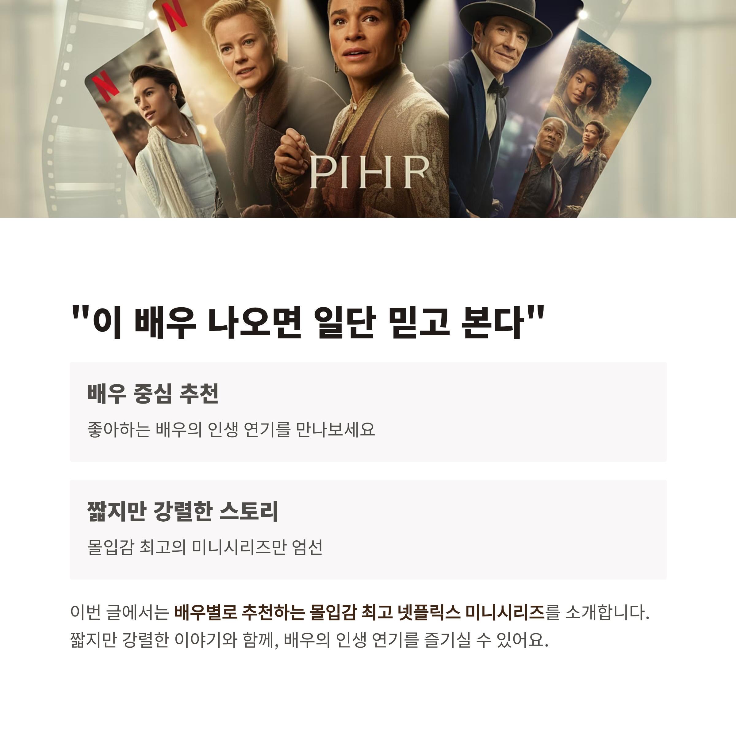 이번 글에서는 배우별로 추천하는 몰입감 최고 넷플릭스 미니시리즈를 소개합니다.