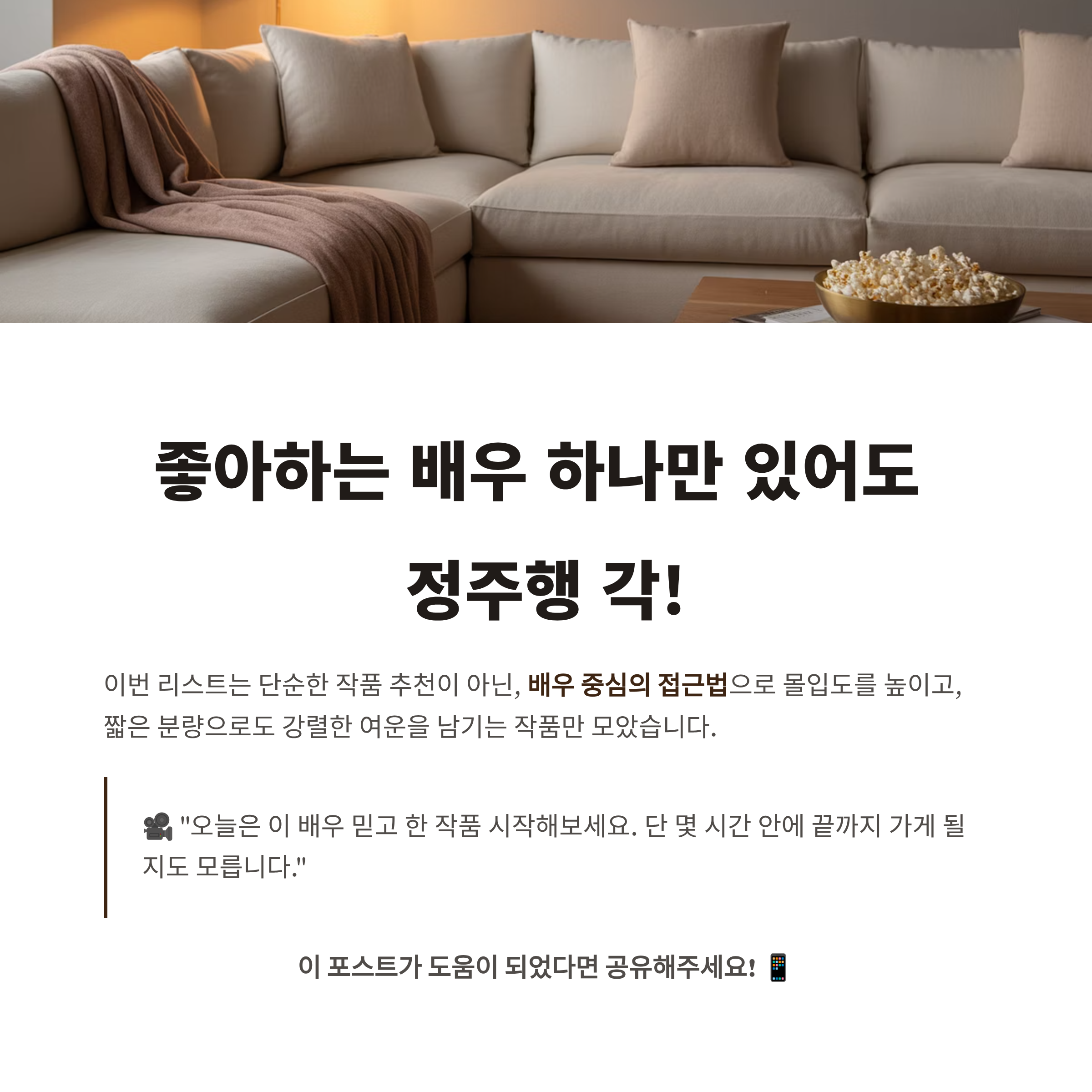 ✅ 마무리🎥 “오늘은 이 배우 믿고 한 작품 시작해보세요.