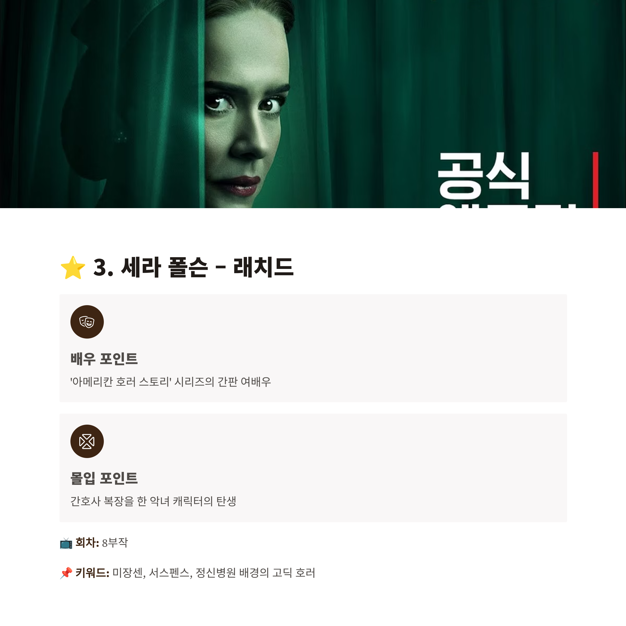 ⭐ 3. 세라 폴슨 – 래치드 (Ratched)