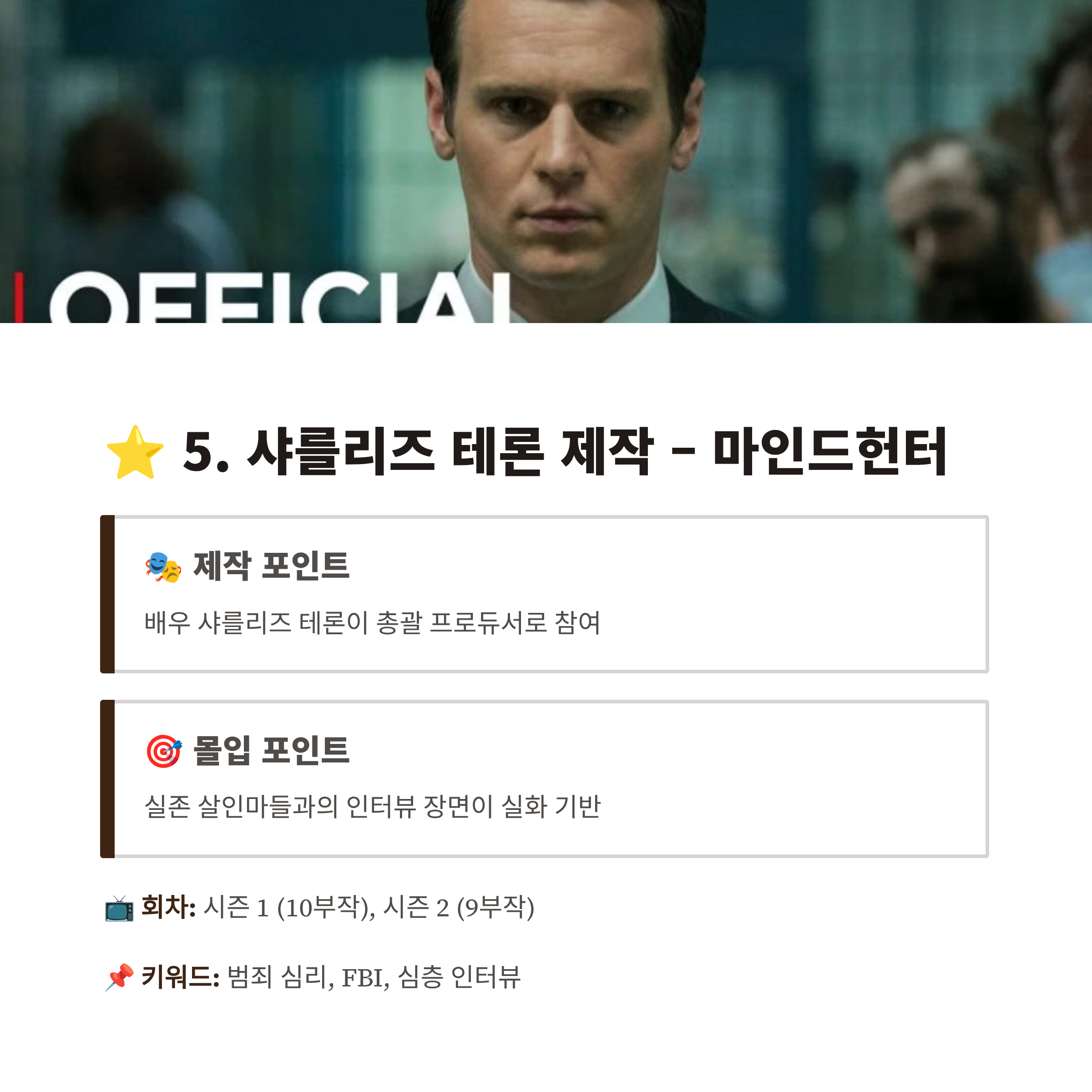 - 📌 키워드: 범죄 심리, FBI, 심층 인터뷰