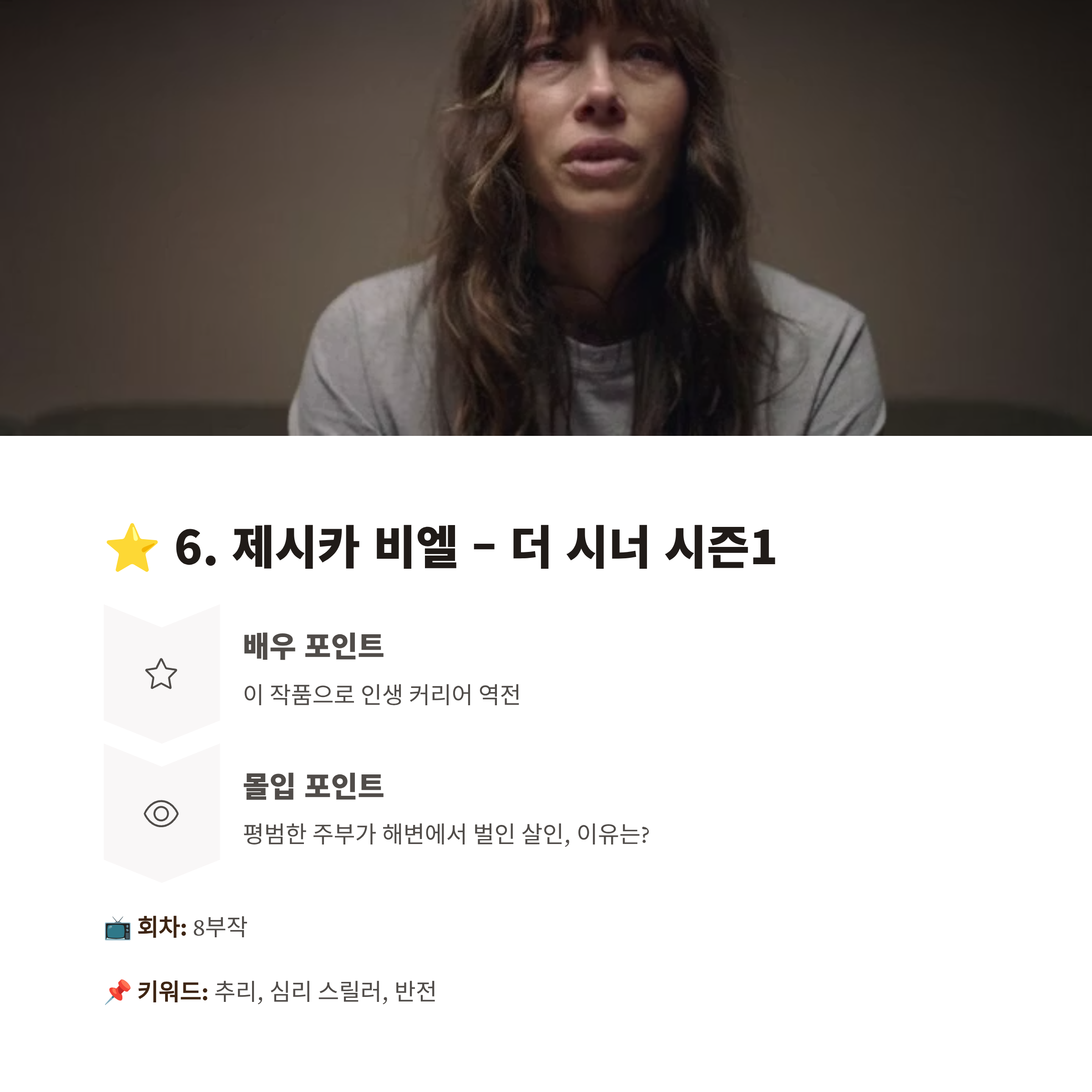 ⭐ 6. 제시카 비엘 – 더 시너 시즌1 (The Sinner)