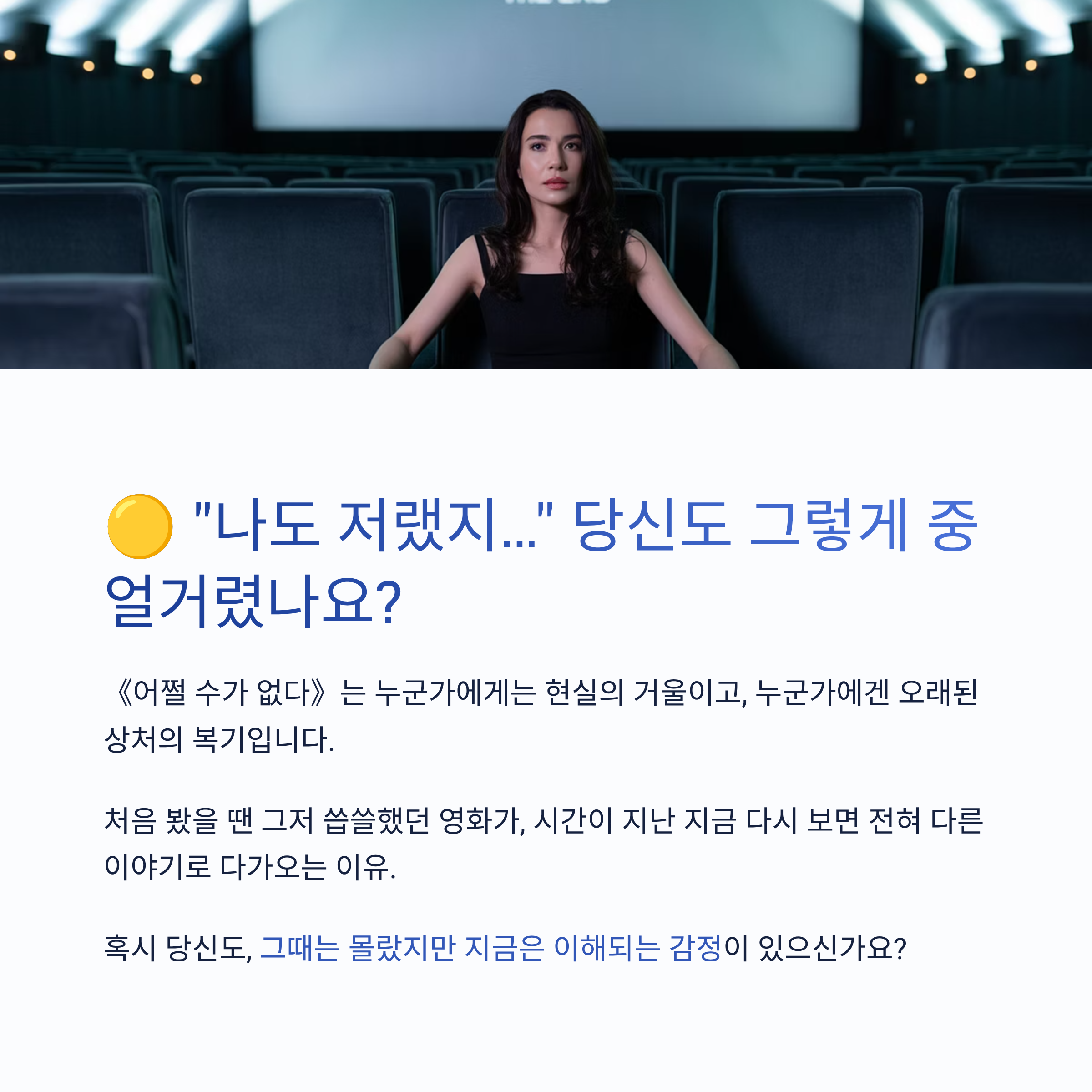 《어쩔 수가 없다》는 단순한 감상용 콘텐츠가 아닌 당신의 이야기가 됩니다.