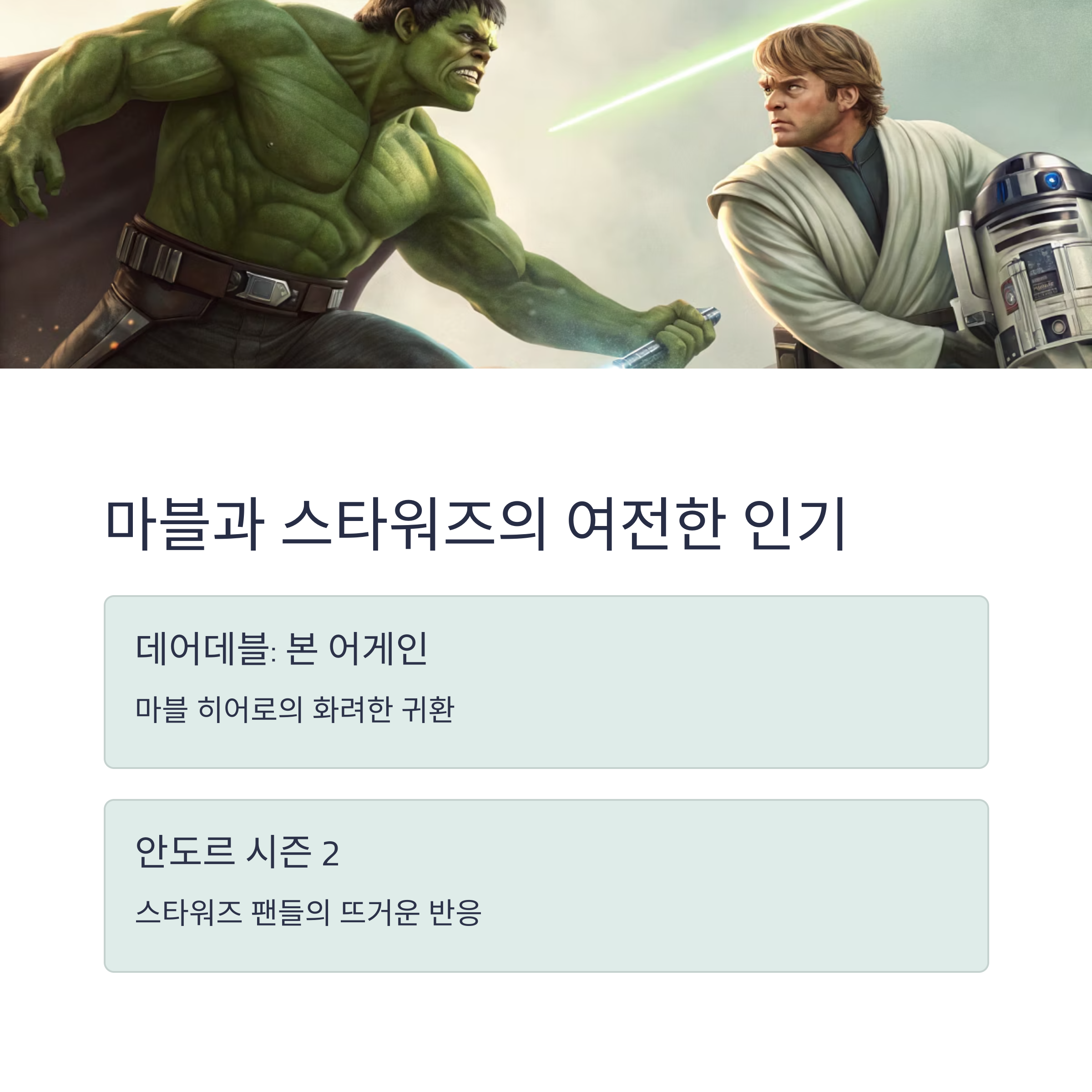| 마블/스타워즈 | 데어데블: 본 어게인, 안도르 시즌 2 | 액션, SF |