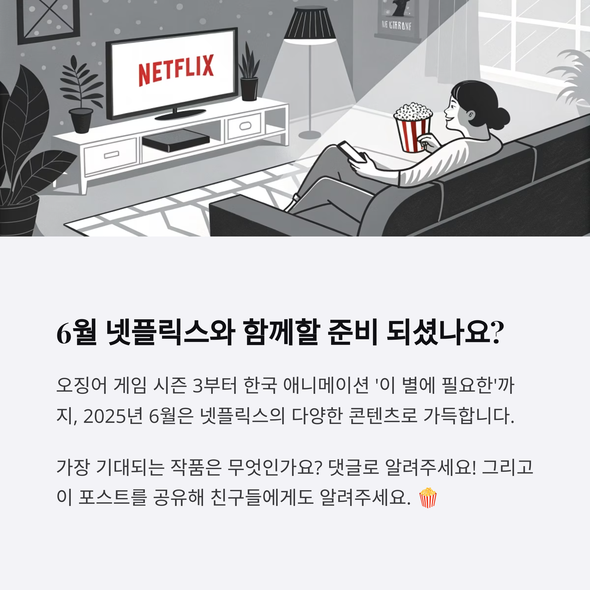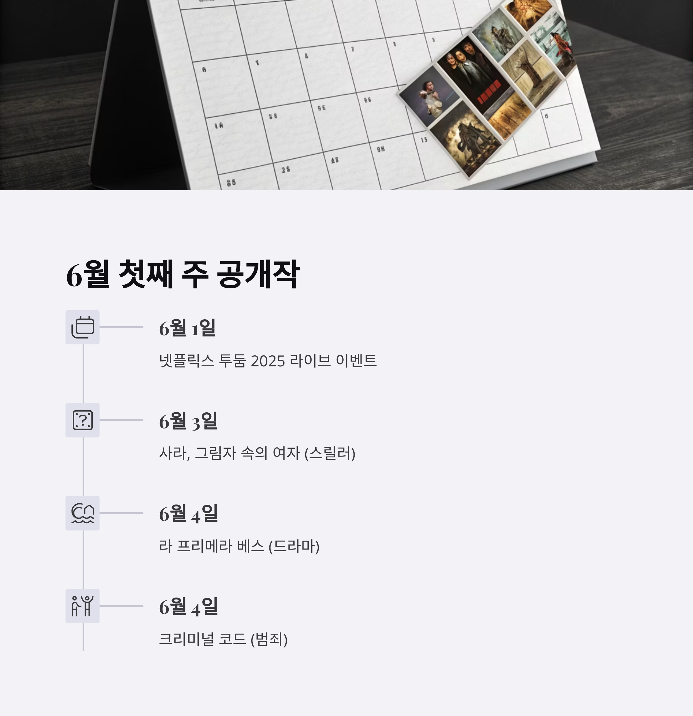 2025년 6월, 넷플릭스는 다양한 장르의 신작 콘텐츠로 시청자들을 찾아옵니다. 한국 오리지널 시리즈부터 글로벌 기대작까지, 이번 달에는 어떤 작품들이 공개될지 함께 살펴보겠습니다.