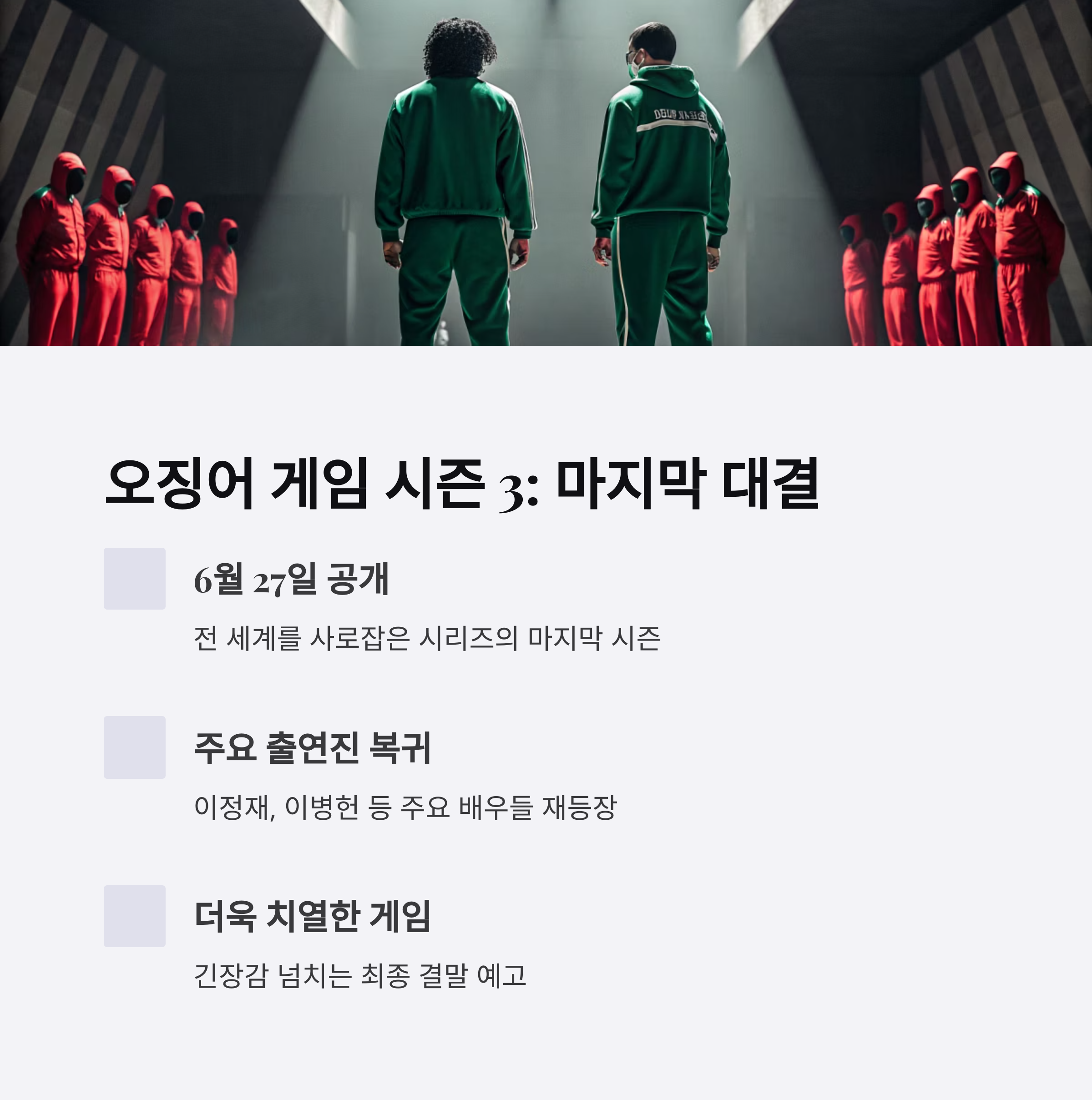 | 오징어 게임 시즌 3 | 시리즈의 마지막 시즌, 치열한 게임의 결말 |