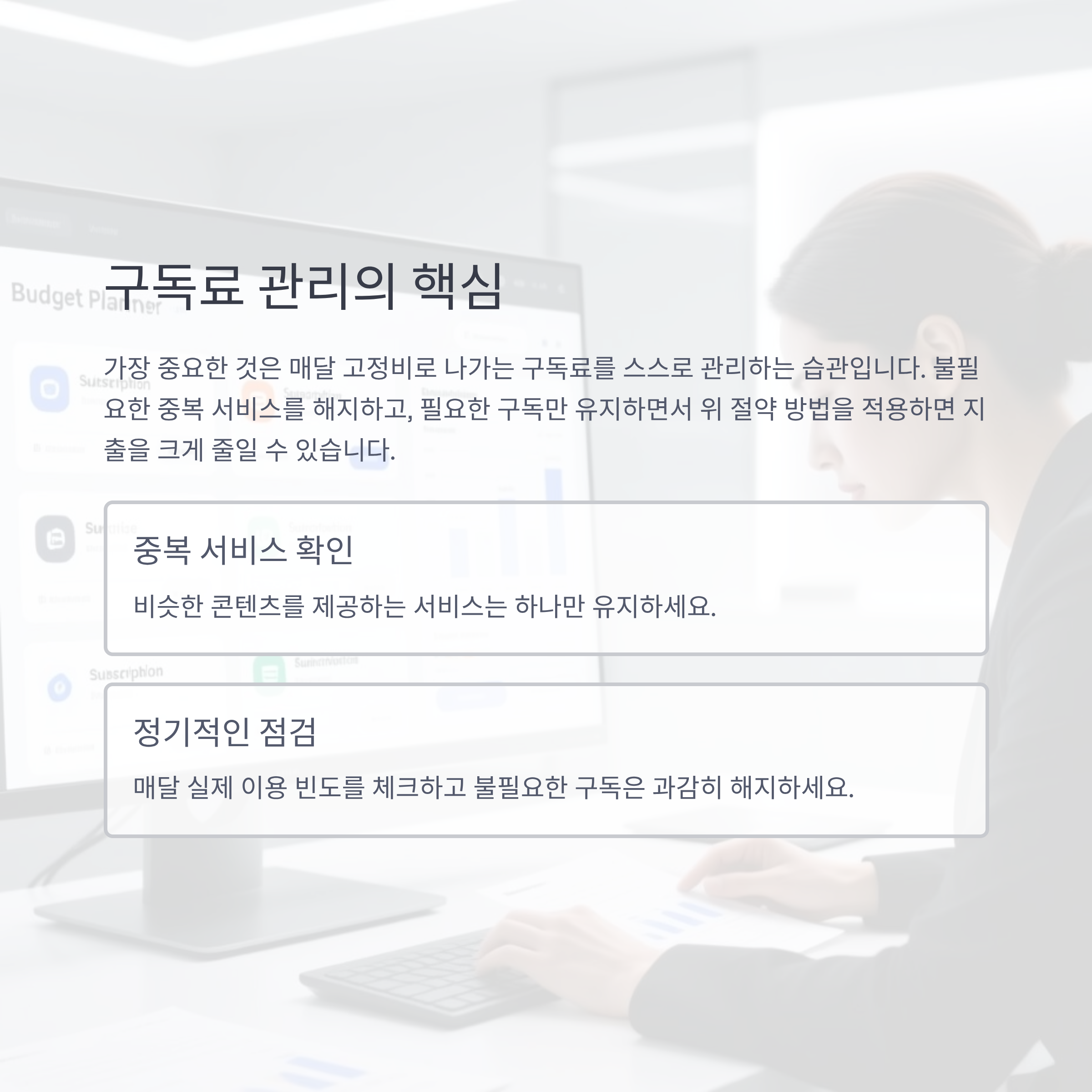 가장 중요한 것은 매달 고정비로 나가는 구독료를 스스로 관리하는 습관입니다. 불필요한 중복 서비스를 해지하고, 필요한 구독만 유지하면서 위 절약 방법을 적용하면 지출을 크게 줄일 수 있습니다.